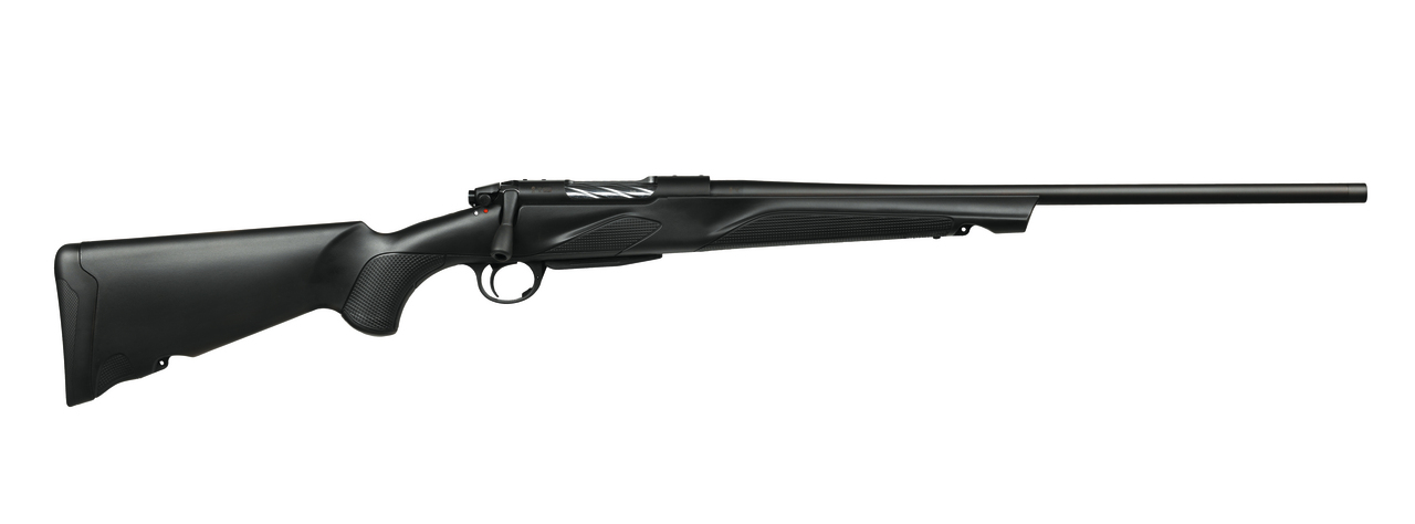Les lignes franches de sa jumelle Synthétique noir s’enrichissent grâce au design distinctif et une culasse torsadée à 3 tenons de fermeture, qui permet une ouverture de 60 ° et d’accéder au levier de culasse conique allégé pour un réarmement rapide même en présence d’optique de grande dimension.