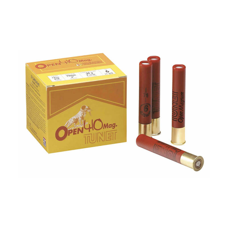 Cartouche TUNET Open 410 calibre (12mm Magnum). Culot de 16mm. Charge 20 grammes.