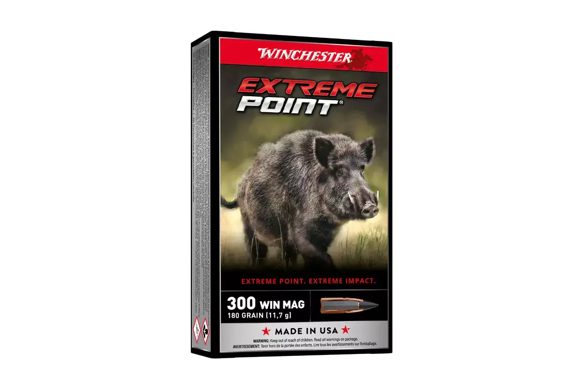 La Winchester Extreme Point en calibre .300 Win. Mag. et 180 grains offre un pouvoir d’arrêt immédiat et massif grâce à sa pointe élargie qui accélère l’expansion. La vitesse initiale très élevée permet à l’ogive de conserver une importante vitesse résiduelle même à longue distance. C’est la balle idéale sur les gibiers de poids moyen et de grande taille, en battue ou à l’affût.